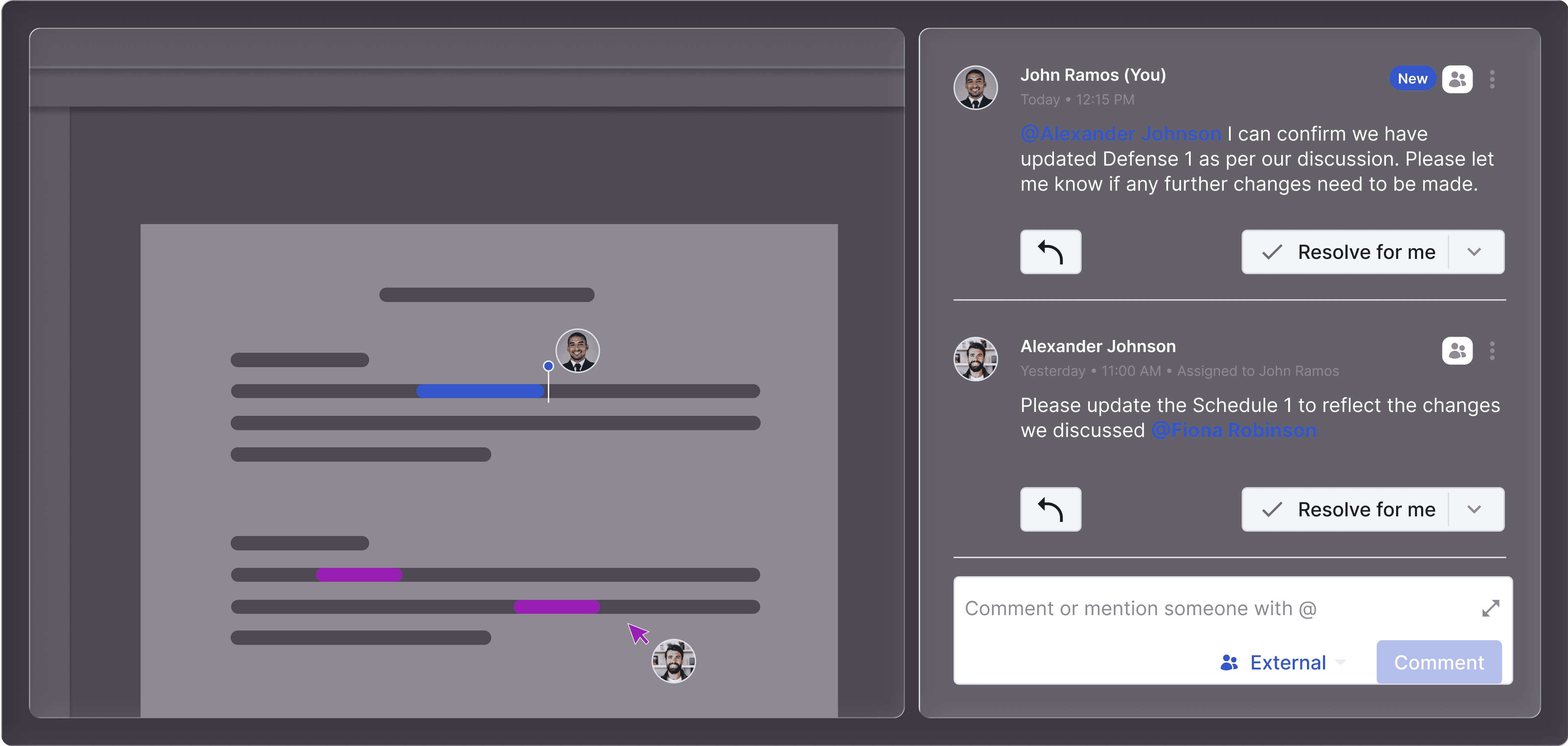 Centralize all documents and up-to-date templates, and enable teams to collaboratively edit, discuss and review work in one place.