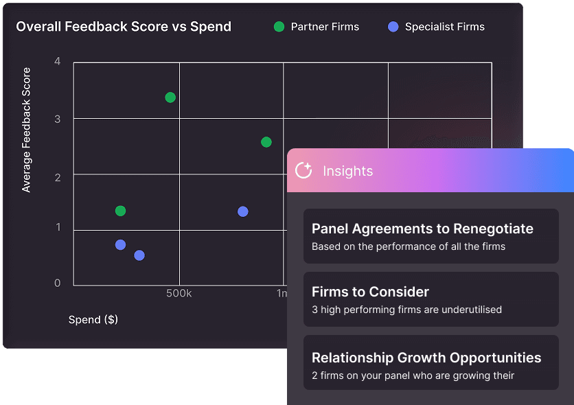 Gain a complete view of your panel—capabilities, spend, and performance—to ensure the right work goes to the right firms, at the right price.